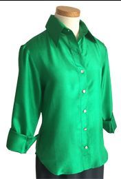 Styled in pure India silk that is light, soft, washable, and easy to care for. This is the shiny silk used in the beautiful sarees you see in Bollywood musicals. What's more, this 50-gm version has been worn for hundreds of years by millions of women, long before there were dry cleaners. So this silk can be either hand-washed or dry-cleaned. Easy care instructions on how to hand-wash are included with every garment. There's even a way to machine-wash this silk but this requires a washer bag by Royal Silk that is available in two sizes, and purchased separately on this website.