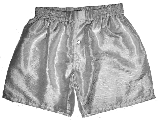 You will find these grey silk boxers to be smart, savvy, smooth and sexy. Slip on a pair and you�ll know why soft, supple silk is the most desirable form of clothing against the human skin. Sleep in them and you will know how silken comfort can feel so graceful. Simply stated � there is no other fabric like silk and that�s why only silk is silk. Fashioned in lightweight crinkled India silk by Royal Silk. Crinkling is an ancient hand-method of texturizing the silk fabric to create fine, subtle, and thin all-over lines for a unique menswear look. Imported. Hand wash or dry clean. Easy wash instructions included. And should you want to machine wash, we recommend our small Washer Bag for silks, sold separately for $7.50 each. Waist sizes: S (30-32�), M (33-34�), L (35-36�), XL (37-38�), 2XL (39-40�), and 3XL (41-42�).>>SEE OTHER SILK BOXERS
