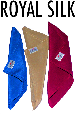 Silk is the most ideal cloth to clean fine optical lenses, camera lenses, CD�s, eyewear, and all those little screens on cell phones and other digital devices. This is because pure silk is by far the softest natural fabric and it will not leave hairline scratches on sensitive surface materials. Silk Wipes by Royal Silk come in a set of three colors, as shown, and each is about 8" square. Washable. Imported. You will not find these utilitarian silks anywhere else. Item SW-03302, $9.00.