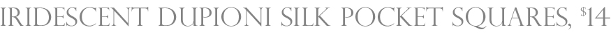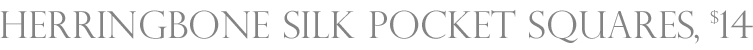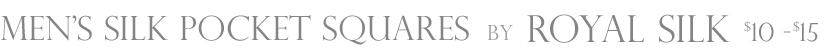 Royal Silk�s soft, shimmery silk herringbone pocket squares are sure to add a subtle and irresistible twinkle to your look. What makes this collection different is the fine silk weave, the glow of the silk, and the tender, calming colors you won�t find elsewhere. We stock these and ship fast. Perfect wedding accessory. Washable. About 16" square. Imported India Silk. $14.00.